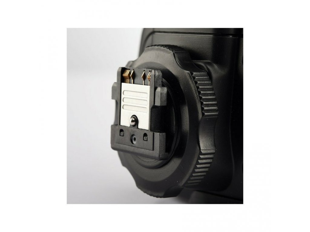 - Průchozí sáňky pro blesk – na vysílači může být připojen další externí blesk.