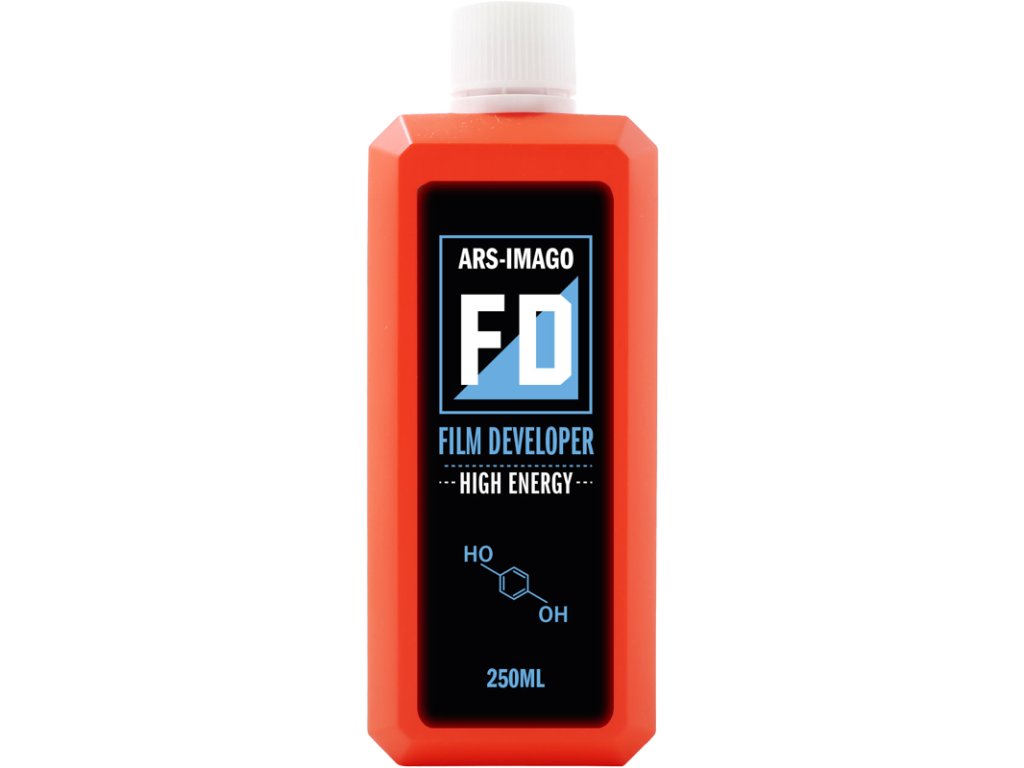 Citlivost filmů je dobře využita a jejich vysoká energie a kompenzační účinek umožňují vysoké úrovně E.I. bez nadměrného kontrastu nebo nadměrné kompenzace světlejších tónů. Tato vývojka vytváří dobrou akutanci a přesné podání zrna, aniž by docházelo k přílišnému hromadění stříbrných solí, a to i při tlakovém zpracování.Pohodlné: velmi vysoká vyvolávací kapacitaEfektivní: maximální využití citlivostiEnergická: vhodná pro tlakové zpracováníARS-IMAGO FD FILM DEVELOPER je koncentrovaná kapalina, kterou je třeba naředit těsně před použitím. Jedná se o vývojku "One Shot", pracovní roztok se nesmí znovu použít. Po použití jej zlikvidujte. Připravte si potřebný pracovní roztok tekoucí vodou.Doporučené ředění 1+39. Je však možné použít ředění obsažené mezi 1+19 (pro filmy s nízkým kontrastem) a 1+59 (pro filmy s vysokým kontrastem).TEPLOTA: Pracovní roztok se musí používat při 20 °C.VYVÍJENÍ: Nepřetržité po dobu prvních 30 sekund, dvě inverze každých 30 sekund po zbývající dobu vyvolávání (vyvolávání v nádrži).KAPACITA: Na každých 250 ml koncentrované kapaliny můžete vyvolat až 30 filmů.EXPIRACE: Koncentrovaný roztok se doporučuje spotřebovat do 6 měsíců od prvního otevření. Naředěný roztok je jednorázový a nesmí se používat opakovaně. Doporučuje se z lahvičky odstranit vzduch.DOBA ROZTOKU: Uvedené doby vyvolávání jsou uvedeny za účelem dosažení co nejpřesnějšího tónového napětí, pokud je porovnáte s navrhovaným E.Is. Zkontrolujte tabulku vyvolávacích časů.Doplňkové parametry