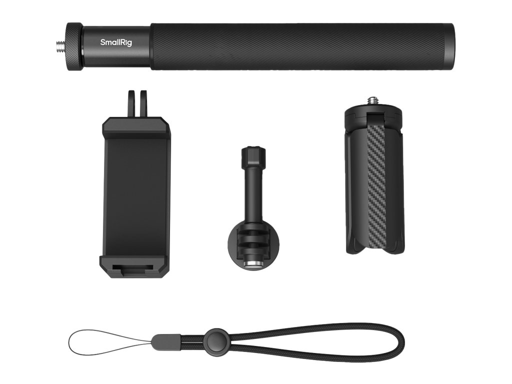 SmallRig 5403 Selfie tyč pro akční kamery  SmallRig 5403 Selfie tyč s výsuvnou délkou až 95 cm a skládací délkou pouhých 20 cm je dodávána s několika doplňky pro podporu chytrých telefonů a akčních kamer, jako jsou GoPro HERO13 Black, insta360 X5, DJI Action 5 Pro a AKASO.   Zejména při použití Insta360 X4 můžete tyč z fotografií a videí vyjmout.  Mezi příslušenstvím je řemínek na zápěstí, který pomáhá udržet tuto tyč a fotoaparát bezpečně na vašem zápěstí a zajišťuje tak bezpečnost  Stativ, který má na horní straně jeden šroub 1/4"-20, připevníte k této tyči prostřednictvím jejího spodního otvoru se závitem 1/4"-20, abyste mohli pořizovat skupinové fotografie, pevné záběry atd.Balení obsahuje:Selfie StickDržák na akční kameruStativSvorka na smartphoneZápěstní řemínekDoporučuji.Doplňkové parametry