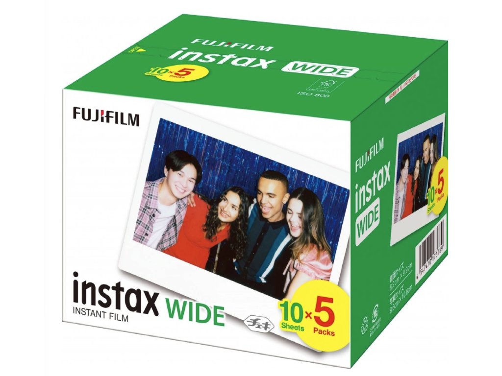 Film Instax WIDE poskytuje brilantní snímky s živými barvami a přirozenými pleťovými tóny, a to jak za denního světla (5500K), tak při použití blesku. Jeho univerzální ISO 800 umožňuje široké využití při fotografování různých objektů a krajin.
