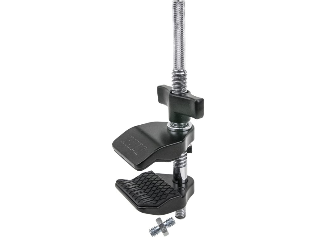 Mini verze svorky Super Viser Clamp vybavená závitem samice 1/4"-20 na rýhované ocelové trubce o průměru 3/8" (10 mm) a čepem samec 3/8"-16 na spodní straně čelisti k připevnění * řady osvětlení a videopříslušenstvíIdeální praktická svorka pro malé podsvícení, která pomáhá držet přenosné zelené pozadí nebo mikrofon a je perfektní pro stísněné prostory, jako fotografování na stole nebo v interiéru autaČelisti jsou konstruovány z hliníkové slitiny lité pod tlakem a mechanicky vzájemně zajištěny pryžovou podložkou – s vynikající odolností proti počasí při zajištění Maximální rozsah uchycení až 51 mmSoučástí stativový čep s adaptérem samec 1/4" – samec 1/4"Omezená dvouletá záruka