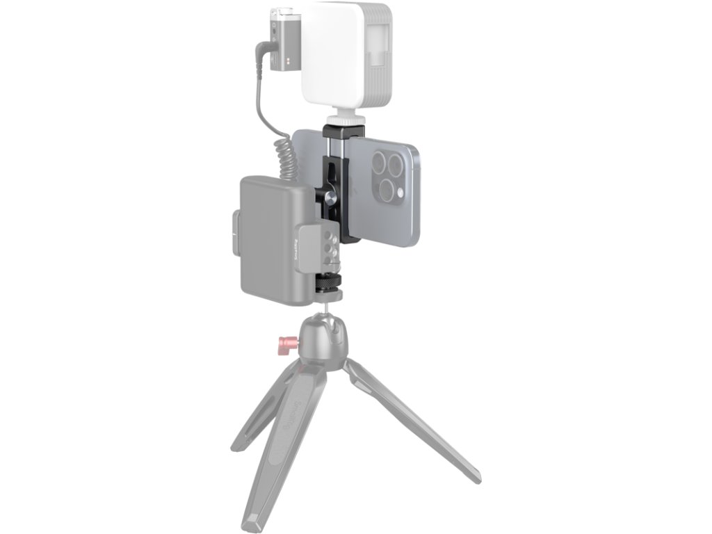 Držák telefonu SmallRig 4301 pro DJI GimbalsPokud telefon nepoužíváte, uvolněte držák studené patky a odpojte jej.Držák telefonu lze připevnit na horní část kamery pomocí šroubu 1/4"-20 a podporuje telefony o šířce 57-88 mm.Rychlé přepínání mezi režimy na šířku a na výšku a snadné upevnění v úhlu s možností otáčení o více než 90°.Na spodní straně je otvor se závitem 1/4"-20 pro DJI RS 3 mini nebo stativ a na horní straně držák se studenou botkou pro mikrofon nebo světlo.Poznámka:Nosnost: 500 g.V režimu na výšku může telefon blokovat otáčení osy gimbalu.Kompatibilita:DJI RS 3DJI RS 3 ProDJI RS 3 miniDJI RS 2DJI RSC 2Ronin SCRonin CBalení obsahuje:1x držák na telefon1x držák Cold Shoe2x šroub M41x šroub 1/4"-202x imbusový klíč